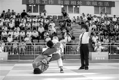 8月1日,“奔跑吧·少年”2024年山西省柔道錦標賽在稷山縣體育訓練館開賽。本次比賽設(shè)男、女組和混合團體共20個級別,來自全省各市的11支代表隊共計200余名運動員參加比賽,運動員們用頑強拼搏的體育精神,彰顯青春力量,用實力詮釋柔道精神。圖為比賽現(xiàn)場。