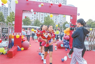 7月23日至30日,2024年亞洲跳繩錦標(biāo)賽在日本舉行,山西省稷山縣稷王小學(xué)博躍跳繩隊榮獲9-11歲女子組4×30秒單搖接力項目季軍。圖為7月31日,博躍跳繩隊4名小將載譽歸來,受到熱烈歡迎。史云平 攝