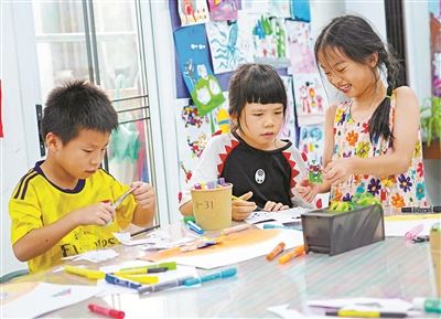 7月31日,四川省南充市未成年人保護中心攜手嘉陵區(qū)鳶尾花社會工作服務(wù)中心在未保兒童活動室開展了“自然而染,布里生花”兒童非遺傳承手工制作活動?;顒又?,社工帶領(lǐng)20多名留守兒童學(xué)習(xí)非物質(zhì)文化遺產(chǎn)扎染的相關(guān)知識,體驗扎染制作技藝,讓孩子們感受中華優(yōu)秀傳統(tǒng)文化的魅力。圖為孩子們體驗扎染。任雯 唐明平 攝