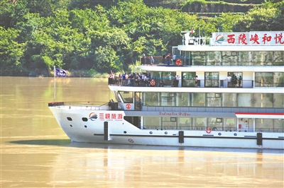 搭載自主駕駛系統(tǒng)的“西陵峽和悅”號游輪是繼“長江三峽1”號第一代純電動游輪之后亮相的第二代新能源船舶,主要運行“兩壩一峽”(三峽大壩、葛洲壩和西陵峽)、長江夜游、三峽升船機等旅游航線,可為游客帶來個性化、多元化的超越性觀感與體驗,讓游客近距離欣賞長江三峽的瑰麗風光。圖為8月4日,游客乘坐“西陵峽和悅”號游輪游覽夏日峽江風景。張國榮 攝