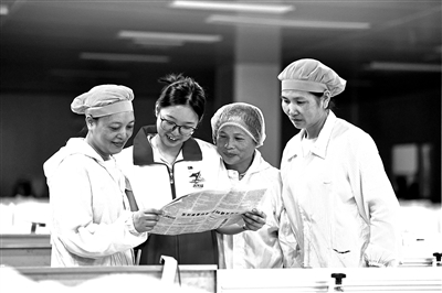 連日來,江西省吉安市峽江縣組建“紅領(lǐng)先鋒”服務(wù)團深入企業(yè)、社區(qū)、鄉(xiāng)村開展黨的二十屆三中全會精神宣講活動,將黨的好聲音傳到千家萬戶。圖為8月7日,“紅領(lǐng)先鋒”服務(wù)團隊員正在向企業(yè)員工宣講黨的二十屆三中全會精神。宋靖輝 攝