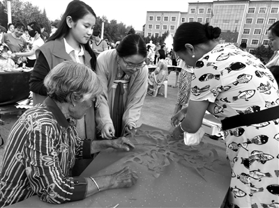為持續(xù)豐富廣大群眾的精神文化生活,近日,新疆福海縣搭建起“新時(shí)代文明實(shí)踐大舞臺(tái)”,開(kāi)展文明集市系列主題活動(dòng),積極組織當(dāng)?shù)氐募艏埶嚾?,現(xiàn)場(chǎng)指導(dǎo)群眾創(chuàng)作剪紙作品,感受剪紙的魅力。圖為8月6日,剪紙藝人創(chuàng)作展示剪紙作品。