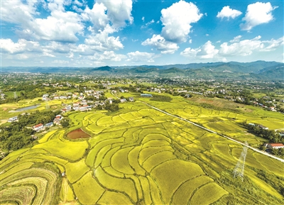 近年來,四川省華鎣市在高標準農(nóng)田建設中,結合丘陵地區(qū)實際,不斷加大撂荒地和荒山荒坡的開發(fā)、改良和利用力度,并出臺優(yōu)惠政策鼓勵農(nóng)業(yè)開發(fā)業(yè)主采取土地“全程托管服務”的模式生產(chǎn)經(jīng)營,通過保底產(chǎn)出、增產(chǎn)、輪種、加工銷售等多次分紅,有效調動當?shù)剞r(nóng)戶、村組及業(yè)主三方的積極性,遏制土地撂荒,保障糧食安全。圖為8月10日華鎣市華龍街道東方村“全程托管服務”的農(nóng)田金浪翻滾,一片豐收的景象。邱海鷹 攝