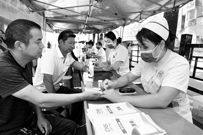 近年來(lái),貴州省黔東南苗族侗族自治州麻江縣積極推進(jìn)緊密型縣域醫(yī)共體建設(shè),推動(dòng)優(yōu)質(zhì)醫(yī)療資源、優(yōu)質(zhì)衛(wèi)生人才、優(yōu)質(zhì)醫(yī)療技術(shù)下沉,讓群眾在家門口就能享受到優(yōu)質(zhì)的醫(yī)療衛(wèi)生服務(wù),有效解決群眾看病就醫(yī)難題。圖為8月20日,醫(yī)護(hù)人員在麻江縣杏山街道群英社區(qū)為群眾義診。羅文剛 攝