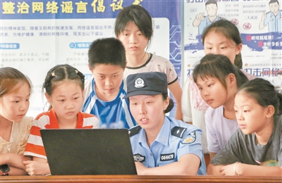 連日來,江蘇省海安市公安局墩頭派出所依托暑托班,開展“牢記網(wǎng)絡(luò)安全 平安樂享暑期”宣傳教育活動,通過知識講解、演示操作、提問互動等方式,增強未成年人網(wǎng)絡(luò)安全意識,預(yù)防網(wǎng)絡(luò)沉迷及網(wǎng)絡(luò)詐騙,提升辨別網(wǎng)絡(luò)謠言能力。圖為近日民警通過網(wǎng)頁瀏覽演示,向孩子們講解安全上網(wǎng)知識。周強 攝