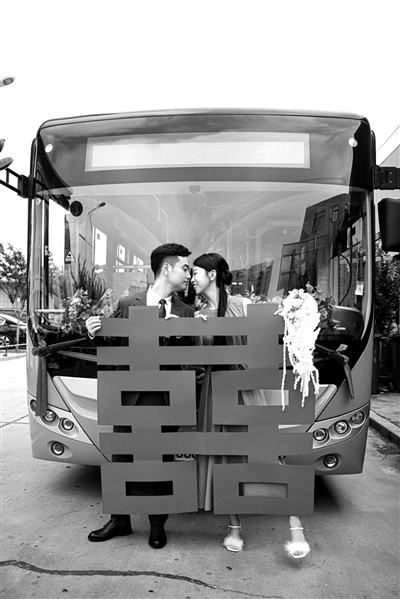近年來,在陜西省西咸新區(qū),用公交車當婚車成為了一種新時尚。與傳統(tǒng)婚車相比,“公交婚車”不僅更貼合現(xiàn)代年輕人追求個性的生活方式,平日里普通的公交車“搖身一變”成為幸?!帮@眼包”,一路吸“睛”無數(shù)。圖①為近日,郭先生夫婦選擇了西咸公交集團打造的綠色低碳環(huán)?!盎槎Y主題公交”,一起駛向幸福。圖②為近日,張女士夫婦選擇“公交婚車”這種新型婚慶方式為愛“減負”,向年輕人傳達低碳環(huán)保、文明節(jié)儉的婚慶新理念。