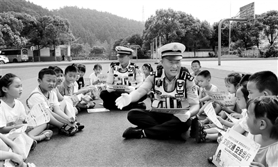 近日,江西省新余市公安局交警支隊(duì)渝水大隊(duì)民警走進(jìn)轄區(qū)中小學(xué)校,開展“交通安全教育進(jìn)校園”活動(dòng),提升學(xué)生們的交通安全意識(shí),培養(yǎng)安全出行、文明出行的良好習(xí)慣。圖為9月3日,渝水大隊(duì)民警在良山鎮(zhèn)第二小學(xué)向?qū)W生們講解交通安全知識(shí)。廖海金 攝