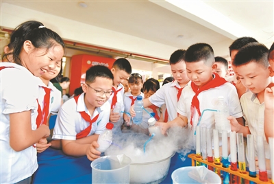 9月1日,咸寧市第二實驗小學學生在進行科學小實驗,迎接開學。 夏正鋒 攝