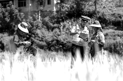 時(shí)下正值水稻收獲的農(nóng)忙時(shí)節(jié),9月4日,貴州省丹寨縣公安局交警大隊(duì)組織民警走進(jìn)轄區(qū)田間地頭,向村民們宣傳道路交通安全知識(shí),尤其講解農(nóng)用三輪車違法載人、超載行駛、騎乘摩托車不戴安全頭盔以及酒駕醉駕等交通違法行為的危害,進(jìn)一步提高村民的道路交通安全意識(shí)。圖為宣講現(xiàn)場(chǎng)。 陸德華 攝