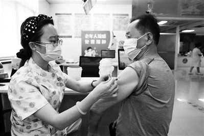 近日,浙江省湖州市吳興區(qū)啟動(dòng)老年人流感疫苗接種工作,為60周歲以上人群免費(fèi)接種流感疫苗。無流感疫苗接種禁忌的適齡人群可憑身份證等有效證件就近到預(yù)防接種門診接種。圖為9月6日,在吳興區(qū)龍溪街道社區(qū)衛(wèi)生服務(wù)中心,醫(yī)護(hù)人員為老人接種流感疫苗。鄧德華 攝
