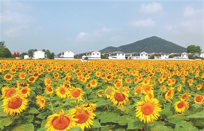 9月8日,江蘇省徐州市銅山區(qū)張集鎮(zhèn)梁堂村700余畝油葵進(jìn)入盛花期,金色花海與村莊、群山交相輝映,構(gòu)成一幅美麗的田園畫卷,吸引眾多游客前來觀賞。近年來,梁堂村堅(jiān)持生態(tài)優(yōu)先、綠色發(fā)展,通過農(nóng)旅融合發(fā)展生態(tài)旅游和休閑觀光農(nóng)業(yè),拓寬農(nóng)民增收渠道,助力鄉(xiāng)村全面振興。蒯創(chuàng) 攝