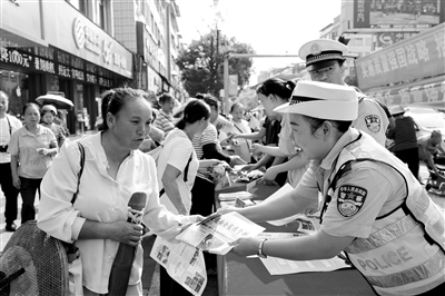 9月5日,貴州省黔東南苗族侗族自治州天柱縣交警大隊借助2024年“質(zhì)量月”主題宣傳活動契機在縣城繁華路段東門口商業(yè)區(qū)開展交通安全宣傳,引導過往市民正確購置安全頭盔、安全座椅等護具,結(jié)合典型事故案例強化群眾安全防范意識,提高遵守交通法規(guī)、安全文明出行的自覺性。圖為當天,宣傳交警向群眾發(fā)放并講解交通安全宣傳資料。