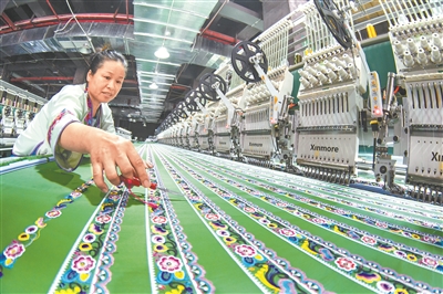 近年來,貴州省黔東南苗族侗族自治州從江縣通過減稅降費、助企紓困等政策發(fā)力,加大對民族刺繡產(chǎn)業(yè)的扶持力度,引進智能繡花設(shè)備,使傳統(tǒng)手工藝向數(shù)字化轉(zhuǎn)變,實現(xiàn)產(chǎn)品迭代升級,節(jié)省了人力成本,提升了生產(chǎn)效率,推動刺繡產(chǎn)業(yè)由傳統(tǒng)加工向數(shù)字化、智能化轉(zhuǎn)型,更好滿足人民美好生活需要。圖為9月7日,在貴州省從江縣一家民族刺繡企業(yè)生產(chǎn)車間,工人在用數(shù)控機床生產(chǎn)刺繡產(chǎn)品。