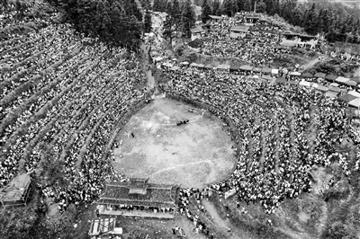斗牛比賽是貴州省黔東南苗族侗族自治州從江縣苗侗同胞頗為喜愛(ài)的一項(xiàng)民俗文娛活動(dòng),每年夏秋至來(lái)年春耕,當(dāng)?shù)刂苣┒紩?huì)舉辦傳統(tǒng)斗牛比賽活動(dòng)。圖為9月8日,該縣停洞鎮(zhèn)鎮(zhèn)松批斗牛塘舉行民俗斗?;顒?dòng),來(lái)自周邊村寨的48頭水牯牛參加比賽,同慶豐收。吳德軍 攝
