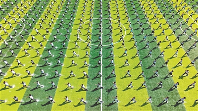 近年來,貴州省銅仁市玉屏侗族自治縣不斷創(chuàng)新大課間活動課程內(nèi)容,將武術(shù)操、踩竹竿、金錢棍等傳統(tǒng)項目納入大課間,讓學(xué)生感受運動的快樂,促進學(xué)生全面發(fā)展和健康成長。圖為9月24日,玉屏侗族自治縣第二小學(xué)的學(xué)生在大課間練習(xí)武術(shù)操。