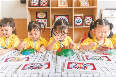 9月25日,浙江省湖州市長興縣畫溪街道包橋中心幼兒園開展了“畫臉譜,識國粹”臉譜繪畫活動,讓孩子們體驗非遺,感受國粹魅力。老師給孩子們講解了臉譜的分類和特點(diǎn),并指導(dǎo)孩子們充分發(fā)揮想象力彩繪臉譜。圖為活動現(xiàn)場。陳海偉 攝