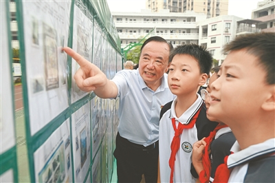 9月26日,四川省內(nèi)江市東興區(qū)委宣傳部、教體局、關(guān)工委和內(nèi)江市集郵協(xié)會等部門,聯(lián)合舉辦了以“禮贊新中國 奮進(jìn)新時代”為主題的集郵文化進(jìn)校園活動,讓學(xué)生們接受了一場生動的愛國主義教育。圖為“五老”志愿者在給學(xué)生們講述郵票背后的紅色故事。蘭自濤 攝