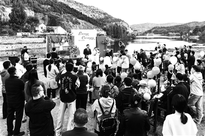 夕陽下,新郎新娘一起攜手上場,將生菜球拋向來賓,大家共同宣讀證婚詞,一起為兩位新人證婚,送上誠摯的祝福。夜幕降臨,綻放煙花、燃起篝火,所有來賓在歌聲中品嘗美食。徐徐秋風(fēng)中,一場新式婚禮給大家留下了美好回憶。