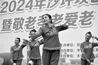 10月10日,由重慶市沙坪壩區(qū)委老干局聯(lián)合區(qū)文旅委(體育局)、區(qū)民政局(老齡委)主辦的2024年沙坪壩區(qū)離退休干部徒步大會暨敬老孝老愛老 “六大行動” 啟動儀式舉行。啟動儀式上,老人們通過健身操、廣場舞等引導(dǎo)老年群體踐行積極老齡觀、健康老齡化理念,做幸福老人。 圖為老同志在表演健身球操。 孫凱芳 攝