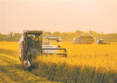 近日,浙江省湖州市長(zhǎng)興縣虹星橋鎮(zhèn)宋高村村民,搶抓晴好天氣,駕駛收割機(jī)在金黃的稻田里收割晚稻,確保顆粒歸倉(cāng)。陳海偉 攝