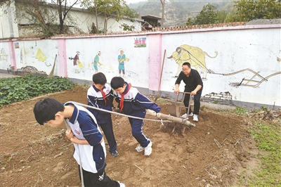 近日,在河南省安陽市殷都區(qū)都里鎮(zhèn)都里小學(xué)勞動教育基地,校長搖晃著播種耬,與六年級的孩子們在勞動課上播種小麥(見圖)。播種之前,老師帶領(lǐng)學(xué)生用耙子把地翻好耙平并將雜物清理出去。隨后,三人一組合作使用傳統(tǒng)的耬車種麥子,以這種勞動體驗讓同學(xué)們了解糧食來之不易。畢興世 攝