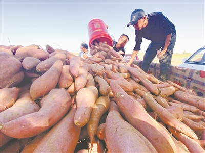 近年來,陜西省大荔縣沙苑一帶的羌白、韋林、官池、蘇村、下寨等鄉(xiāng)鎮(zhèn),紅薯產(chǎn)業(yè)規(guī)?;l(fā)展。由于當(dāng)?shù)赜歇?dú)特的沙土地優(yōu)勢,加上農(nóng)民科學(xué)運(yùn)用現(xiàn)代農(nóng)業(yè)技術(shù),種出的紅薯口感細(xì)膩、甜度適中、干面沙爽,贏得了市場青睞,成為當(dāng)?shù)剞r(nóng)民增收致富的金疙瘩。圖為近日大荔縣羌白鎮(zhèn)南莊村村民在收紅薯。李世居 攝