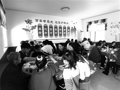 為改變不良風氣、推進移風易俗,促進鄉(xiāng)村全面振興,近年來,河南省西平縣楊莊鄉(xiāng)馬樓村通過村“兩委”牽頭,在村部旁新建“幸福食堂”,統(tǒng)一承接村級紅白喜事等宴席。同時,該村經(jīng)廣泛征求村民、黨員意見,建立了由村黨支部書記擔任會長的紅白理事會,以長效制度固定辦紅白喜事標準,明確限餐標、限范圍、限規(guī)模、限禮金、管安全、管服務、管衛(wèi)生等“四限三管”內(nèi)容,引導村民文明節(jié)儉操辦婚喪宴。圖為近日村民在馬樓村“幸福食堂”用餐。