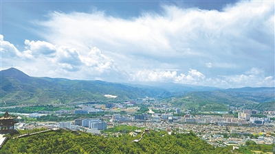鳥(niǎo)瞰湟源縣城。 樊永濤 攝