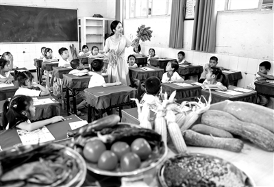 眼下正值水稻、玉米、大豆等糧食作物收獲季,四川省華鎣市以此為契機,在當(dāng)?shù)刂行W(xué)和幼兒園廣泛開展“節(jié)約糧食 從我做起”主題德育活動,通過主題班會、征文比賽、觀看實物等形式宣傳糧食安全,倡導(dǎo)“光盤行動”,培養(yǎng)孩子們愛惜糧食的好習(xí)慣。圖為近日,溪口鎮(zhèn)小學(xué)的老師在主題班會上講解農(nóng)作物的知識。邱海鷹 劉南賢 攝