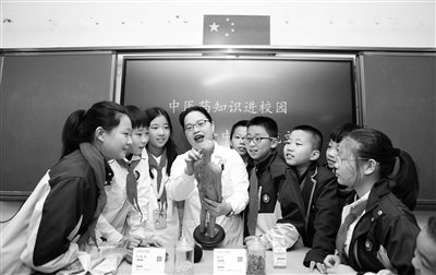 10月21日,重慶市永川區(qū)集嬡醫(yī)院中醫(yī)科走進(jìn)永川區(qū)萱花小學(xué)開展“中醫(yī)藥知識(shí)進(jìn)校園,感受中國傳統(tǒng)文化”主題教育活動(dòng),為學(xué)生們帶來了一場(chǎng)中醫(yī)藥文化盛宴。課堂上,醫(yī)務(wù)人員向?qū)W生們講解生活中常見的中草藥,以及各種中草藥的特點(diǎn)和功效、讓學(xué)生們近距離觀察人體穴位、中藥材的形態(tài)、了解其功效等,更加深入了解中醫(yī)在防未病、治常見病、多發(fā)病、改善亞健康人群體質(zhì)的獨(dú)特優(yōu)勢(shì)。圖為當(dāng)天,醫(yī)務(wù)人員給學(xué)生講解人體穴位的功能。陳仕川 攝