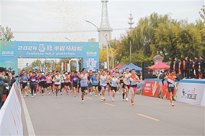 10月20日,江蘇省徐州市豐縣半程馬拉松在大沙河畔鳴槍開跑。本次半程馬拉松比賽由豐縣人民政府主辦,豐縣文體廣電和旅游局承辦,分為男子半程馬拉松、女子半程馬拉松和歡樂跑三個(gè)組,報(bào)名參賽總?cè)藬?shù)超3000人。圖為活動(dòng)現(xiàn)場。高榮光 攝