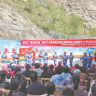 5月17日,神木市“銀發(fā)面對(duì)面”新時(shí)代文明實(shí)踐活動(dòng)走進(jìn)西沙街道鏵西社區(qū)新時(shí)代文明實(shí)踐站表演《軍民團(tuán)結(jié)一家親》情景劇系列節(jié)目。