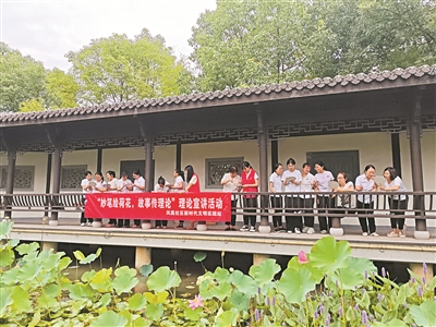 鳳凰社區(qū)新時代文明實踐站在牡丹園開展“妙手繪荷花 故事傳理論”理論宣講活動。 宣城市文明辦供稿
