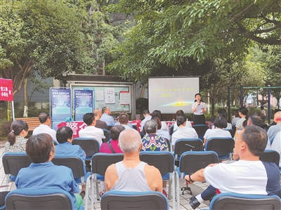 公司向社區(qū)居民宣傳防范電信網絡詐騙知識。