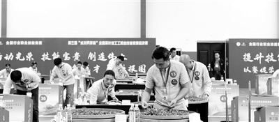 10月29日,全國行業(yè)職業(yè)技能競賽——第三屆“永川秀芽杯”全國茶葉加工工職業(yè)技能競賽總決賽在位于重慶市永川區(qū)的重慶市經(jīng)貿(mào)中等專業(yè)學(xué)校舉行,來自全國9個(gè)?。ㄖ陛犑校┑?9名選手同場競技,展示加工技能,演繹工匠風(fēng)采。圖為參賽選手進(jìn)行手工制茶比拼。陳仕川 攝