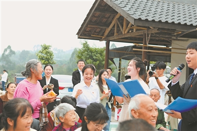 近日,重慶市永川區(qū)臨江鎮(zhèn)聯(lián)合重慶城市職業(yè)學院馬克思主義學院,在龍洞橋村代家院子開展了“黨的二十屆三中全會精神進院壩”思政課實踐教學活動?;顒蝇F(xiàn)場,喜慶歡樂的快板、聲情并茂的朗誦、有趣有料的三句半等節(jié)目,贏得廣大村民的一致好評?;顒舆€穿插了有獎知識競答,現(xiàn)場氣氛輕松活躍。圖為活動現(xiàn)場。陳仕川 攝