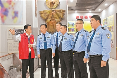 王國霖在通化縣紅色主題展覽館為民警講述紅色故事。(受訪者供圖)