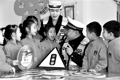 12月2日是“全國交通安全日”。近日,河北省邯鄲市公安局交巡警支隊(duì)永年區(qū)大隊(duì)聯(lián)合轄區(qū)第二幼兒園開展“交通安全進(jìn)校園”主題教育活動(dòng),民警通過演示交通指揮手勢、講解交通安全知識、宣傳交通法規(guī)等方式,讓孩子們在寓教于樂中提高交通安全意識,從小養(yǎng)成文明出行的好習(xí)慣。圖為民警在教小朋友識別交通標(biāo)志。胡高雷 攝