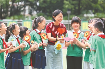 近期,四川省樂(lè)山市各學(xué)校開(kāi)展了豐富多彩的教師節(jié)活動(dòng),同學(xué)們通過(guò)制作賀卡、彩泥畫像等方式,表達(dá)對(duì)老師的節(jié)日祝福。圖為9月8日,樂(lè)山市翡翠實(shí)驗(yàn)學(xué)校的學(xué)生將制作的彩泥多肉盆景和賀卡送給老師。李華時(shí) 攝