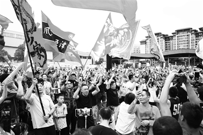 賽前預(yù)熱活動中的成都隊(duì)球迷。 本報(bào)記者 劉旭飛 攝