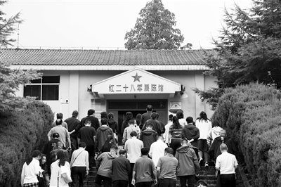 國慶假期,游客在參觀安徽岳西縣鷂落坪國家級自然保護區(qū)內(nèi)的紅二十八軍舊址群。方好 攝