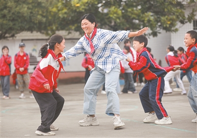 近年來,貴州省黔西市綠化白族彝族鄉(xiāng)培育小學(xué)常態(tài)化開展形式多樣、內(nèi)容豐富的“多彩大課間”活動(dòng),結(jié)合學(xué)生興趣與學(xué)校特色推出創(chuàng)新項(xiàng)目,著力打造健康、快樂、充滿活力的校園文化。圖為10月13日,老師帶領(lǐng)學(xué)生們在大課間玩老鷹捉小雞游戲。