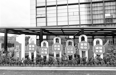 園區(qū)內展示社會主義核心價值觀宣傳標語。