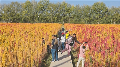 游客在藜麥地游玩拍照。