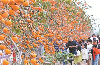近年來,四川省樂山市五通橋區(qū)湯家壩村因地制宜發(fā)展特色產(chǎn)業(yè),大力推進(jìn)柿子種植,走出一條以柿子產(chǎn)業(yè)為依托,推動農(nóng)文旅融合發(fā)展的新路子。圖為10月19日,該村紅彤彤的柿子成為小山村一道亮麗的風(fēng)景線,吸引游客前來游玩。