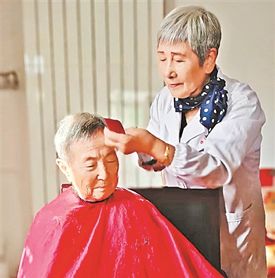 趙曉鳳在為居民義務(wù)理發(fā)。劉智峰 攝