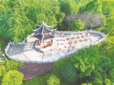 太極拳愛好者在重慶市梁平區(qū)正龍寺公園打太極拳健身。劉輝 攝
