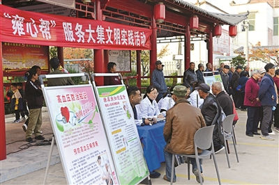 “活動(dòng)組織難、群眾聽(tīng)不懂、上熱下冷,投入不少,卻效果不佳?!闭劶按饲拔拿鲗?shí)踐工作的困境,鳳翔區(qū)相關(guān)負(fù)責(zé)人直言不諱。如何讓文明實(shí)踐的“供”與群眾的“需”精準(zhǔn)對(duì)接,成為鳳翔區(qū)文明實(shí)踐工作的核心發(fā)力點(diǎn)。該區(qū)從創(chuàng)新活動(dòng)載體入手,整合社會(huì)資源向文明實(shí)踐聚集,將傳播新思想、引領(lǐng)新風(fēng)尚的核心目標(biāo)與群眾的實(shí)際需求緊密結(jié)合。經(jīng)過(guò)反復(fù)探索與實(shí)踐,集便民服務(wù)、理論宣講、典型引領(lǐng)于一體的“雍心幫”服務(wù)大集市品牌應(yīng)運(yùn)而生。