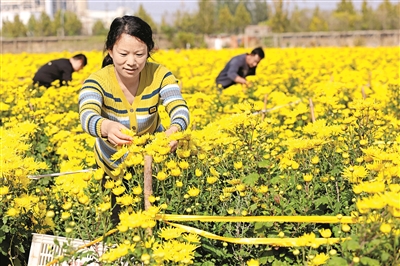 11月3日,在山東省棗莊市市中區(qū)光明路街道丁莊村,田間秋菊一片金黃。村民忙著采收、晾曬菊花。近年來,該村以黨建為引領(lǐng),采取“黨支部+合作社+農(nóng)戶”的富民強村模式,帶領(lǐng)村民發(fā)展“菊花經(jīng)濟”,從菊花種植、養(yǎng)護、采摘、烘干、包裝到銷售提供一條龍服務(wù),助農(nóng)增收致富,為鄉(xiāng)村振興戰(zhàn)略注入活力。孫中喆 趙新洲 攝