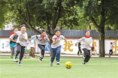 11月6日,貴州省黔東南苗族侗族自治州從江縣剛邊壯族鄉(xiāng)中心小學足球社團的學生在踢足球。近年來,從江縣教育部門積極貫徹落實“雙減”政策,全面推進全縣中小學課后延時服務工作,引導學校因地制宜開展豐富多彩的社團活動,滿足學生個性化、多樣化需求,讓學生們樂享課后時光。羅京來 攝